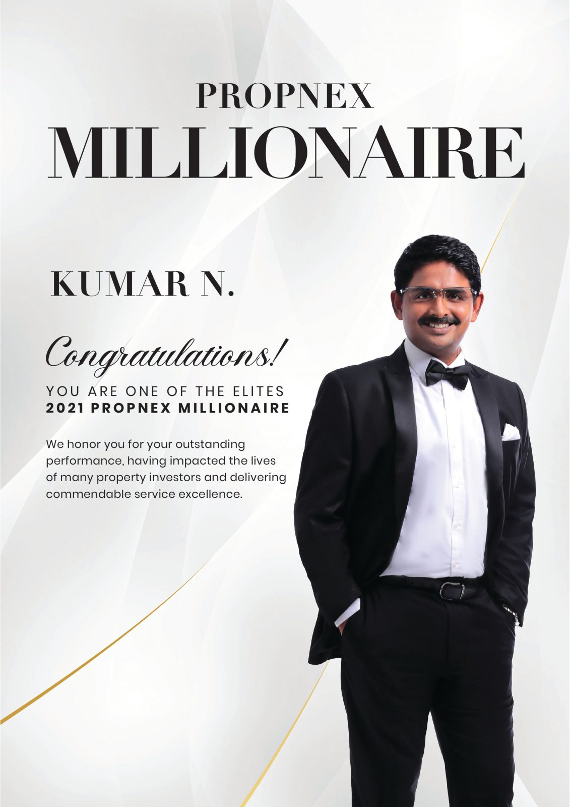 Kumar is a Singapore real estate agent, currently functioning as an Group Director at Propnex Realty Pte Ltd. He has been one of the Top Sales Producer at Propnex for eight consecutive years from 2013 to 2021. Kumar is also hat-trick Millionaire Property Agent Singapore, Propnex Brand Ambassador, Super Platinum Acheiver, Titanium Acheiver and Propnex Team member. He and his consistently top ranked property agent singapore, kumar properties team specialize in HDB, Condo, Penthouses, Landed, Commericial, Resale flat singapore property.
